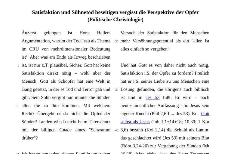 Satisfaktion und Sühnetod beseitigen vergisst die Perspektive der Opfer (Politische Christologie)