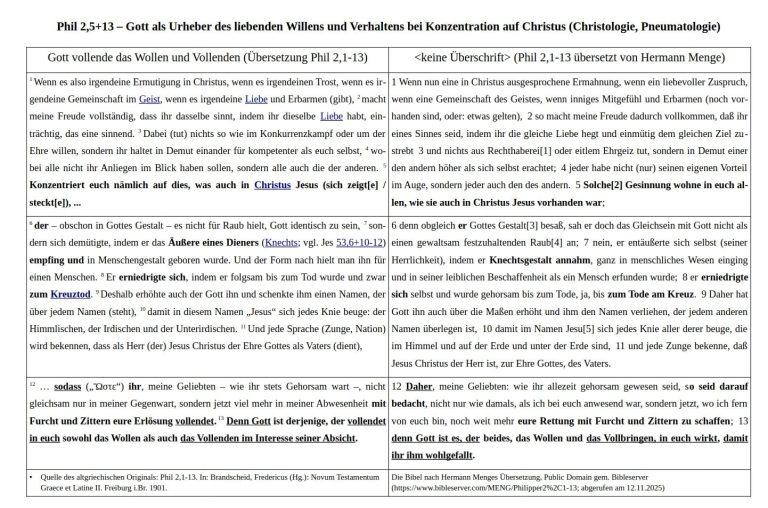Phil 2,5+13 – Gott als Urheber des liebenden Willens und Verhaltens bei Konzentration auf Christus (Christologie, Pneumatologie)
