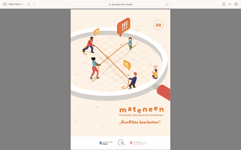 Das Material selbst ist ein umfangreicher Methodenpool zur demokratischen Schulkultur. Es enthält detaillierte Praxisartikel mit Anleitungen und Arbeitsmaterialien